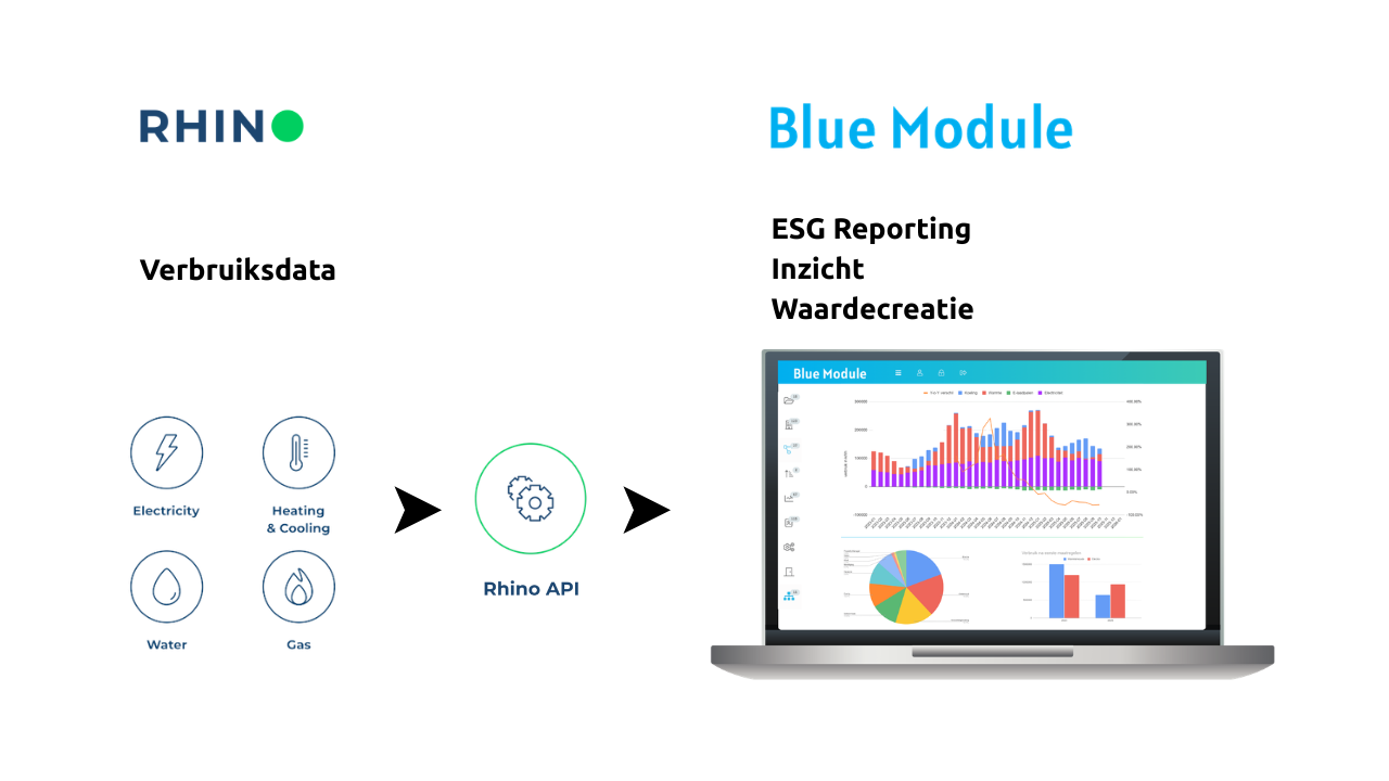 Met de volledig geïntegreerde Rhino API kunnen Blue Module-gebruikers werken met gecentraliseerde utiliteitsdata met hoge frequentie, zonder afhankelijk te zijn van handmatige exports, inconsistente formats of vertraagde rapportagecycli.